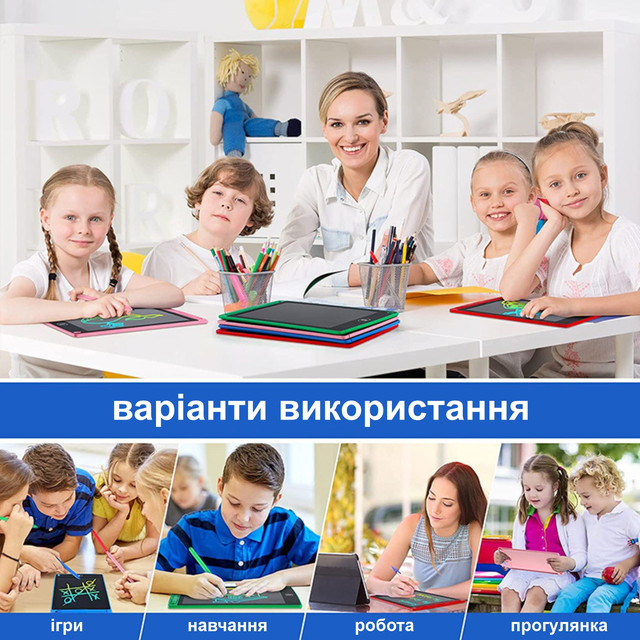 Монохромний екран планшета забезпечує відмінну контрастність та чіткість малюнків, дозволяючи створювати виразні та деталізовані витвори мистецтва. Завдяки простоті та інтуїтивно зрозумілому інтерфейсу, планшет підходить як для дітей, так і для дорослих, відкриваючи нескінченні можливості для творчості та розваг.