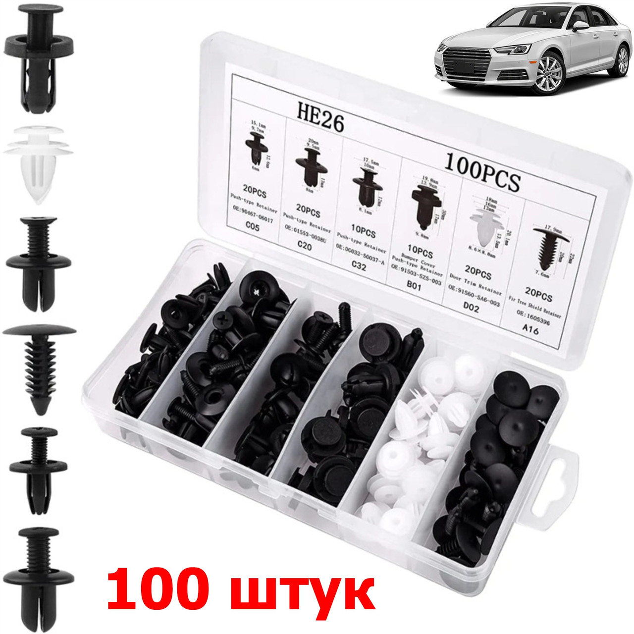 Готуйте свій автомобіль до ремонту або модифікації за допомогою зручного набору кліпс для авто. У комплекті 100 штук високоякісних кліпс і пістонів, в асортименті з 6 видів для різних потреб.