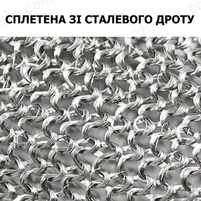 - Нержавіюча сталь: Рукавичка виготовлена з неіржавкої сталі, що забезпечує її довговічність, стійкість до корозії та механічних пошкоджень.